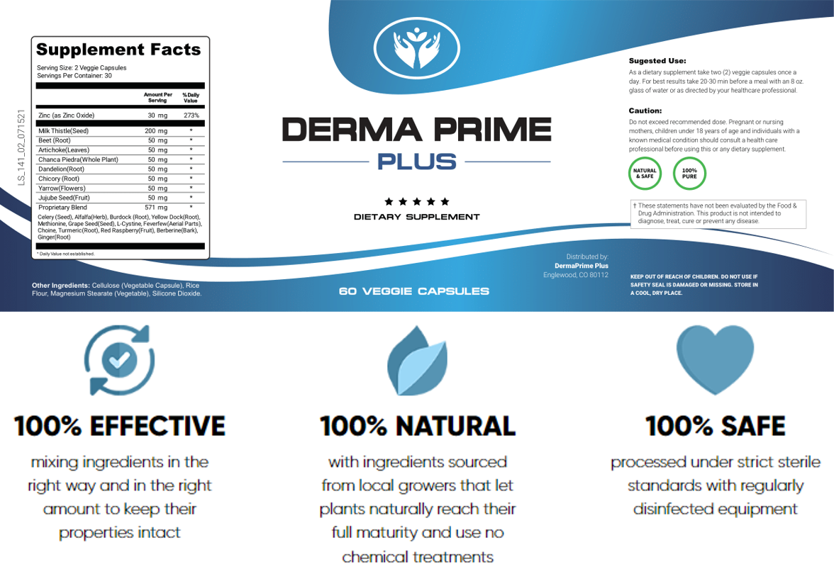 Derma Prime Plus targets 2 fundamental factors affecting the skin: INFLAMMATION and TOXINS in the liver. With the proper maintenance and care, your liver will take care of you from the inside out.